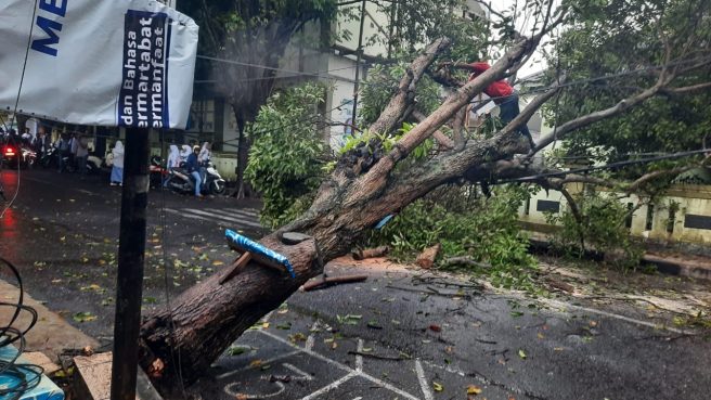 Angin Kencang, Pohon Tumbang Timpa Belasan Motor di Depan SMA 10 Ternate