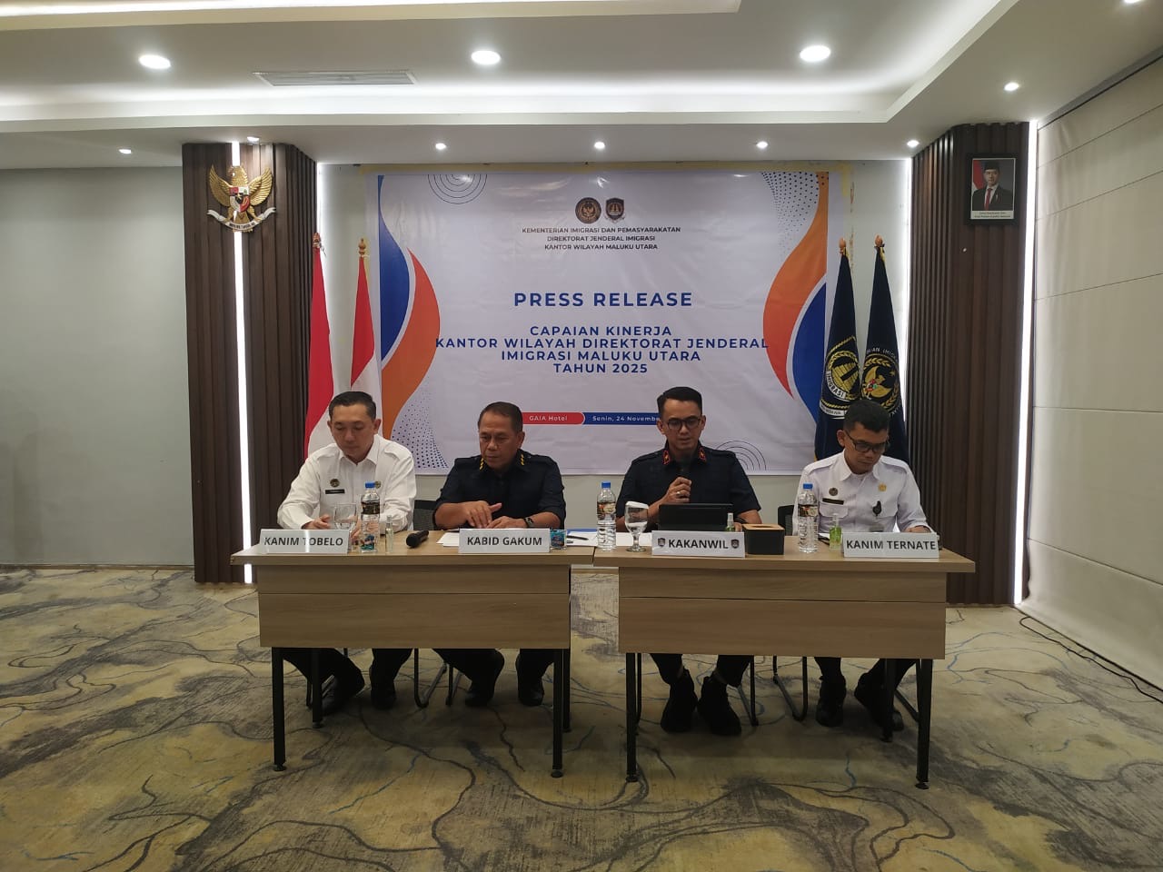 “Ini mayoritas warga negara RRC (Tiongkok) yang bekerja di tambang” ujar Ridwan saat press release capaian kinerja Kanwil Ditjen Imigrasi Maluku Utara tahun 2025 di Hotel Gaia , Senin (24/11/2025).