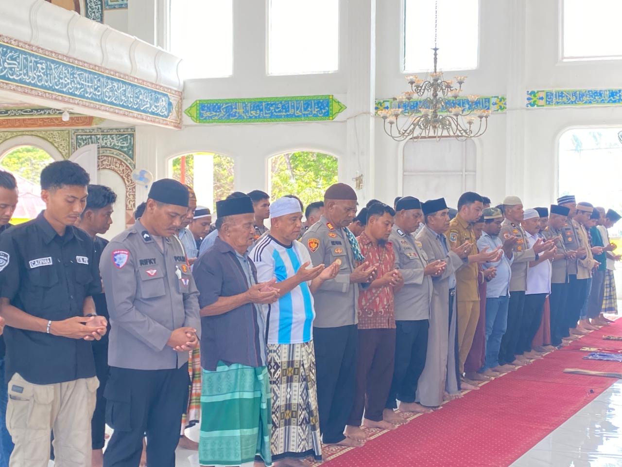 Salat gaib yang diinisiasi Polres Taliabu berlangsung khidmat dipimpin Wakapolres Kompol Sinar Syamsu dan turut dihadiri pejabat utama, personel Polres Taliabu, serta sejumlah tokoh agama dan perwakilan masyarakat.